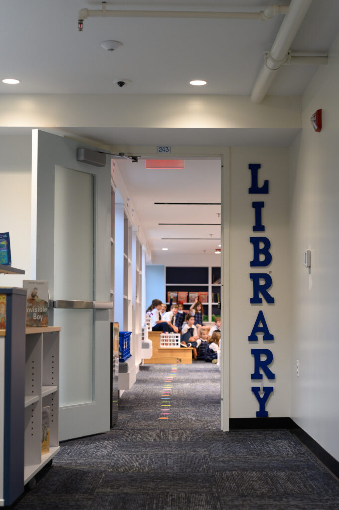 Library time includes checking out books, reading time for the younger students, and discussion of books as they get older. The 8th-grade students use library time to discuss social justice issues and support them as they draft research papers.